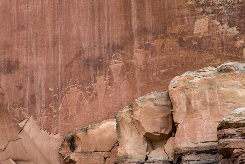 300 to 1300 A.D. saw the Fremont Culture enter Capitol Reef. Corn, beans, and squash were staples, while petroglyphs and pictographs were etched onto rock walls.