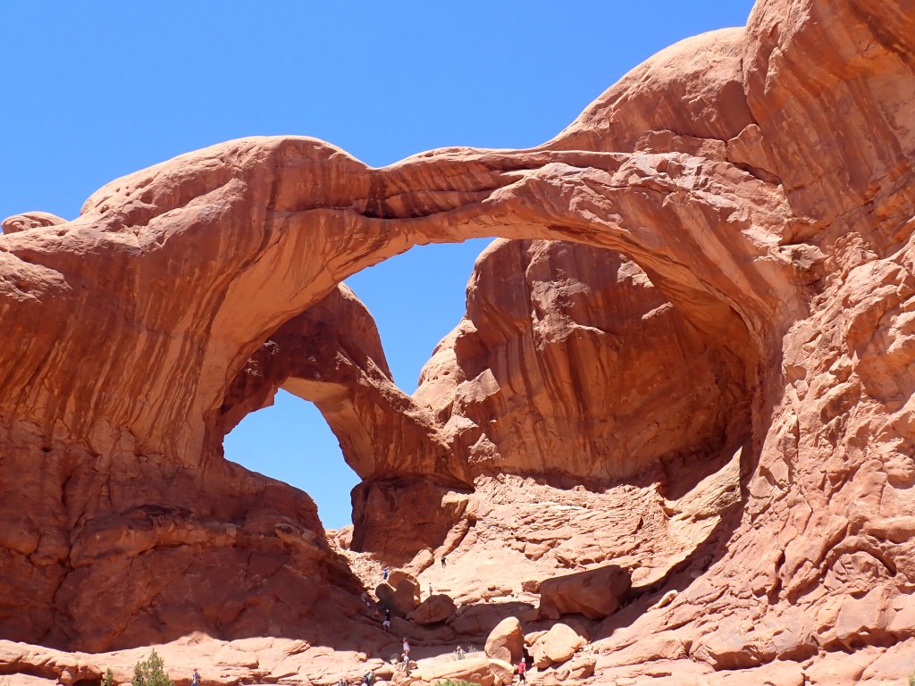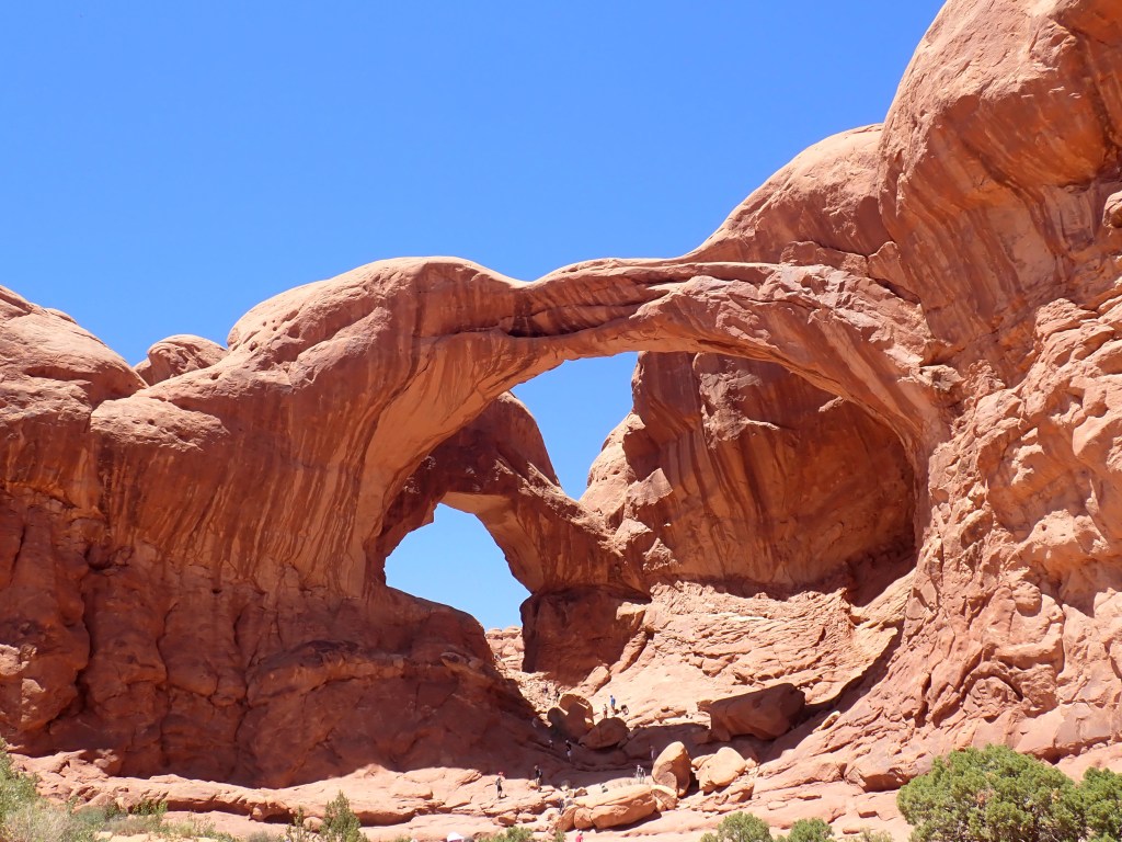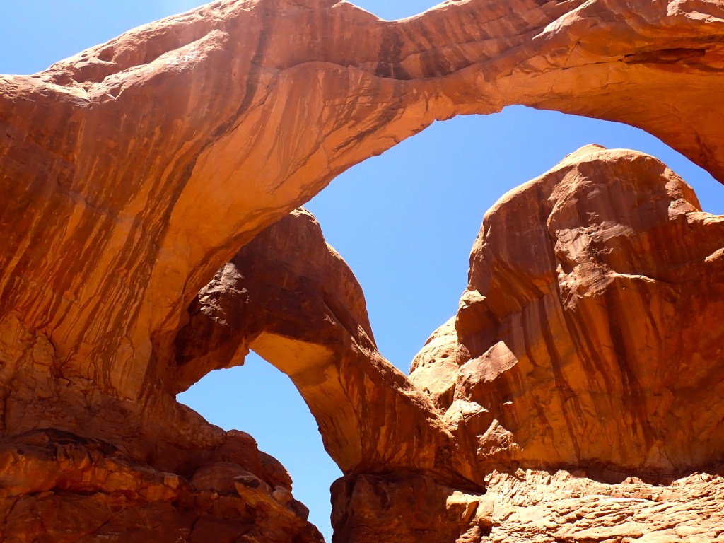 The trailhead for Double Arch is on the North side of the parking lot in the windows section. It is well marked. Double Arch is the second longest and the tallest arch in the park. The trail is 0.5 mile and worth the time! Movie buffs – 1989 Indiana Jones and The Last Crusade had a scene filmed under this arch!