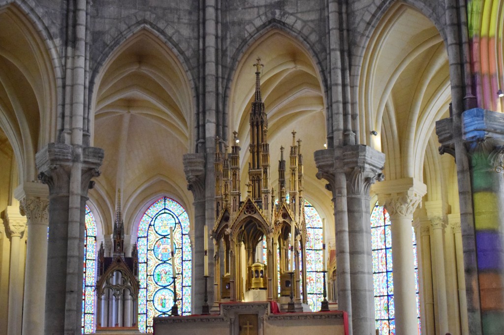 Symbolism: The choir’s twelve columns represent the twelve Apostles, and the light represents the Holy Spirit. Suger’s words carved in the nave: “For bright is that which is brightly coupled with the bright, and bright is the noble edifice which is pervaded by the new light”.