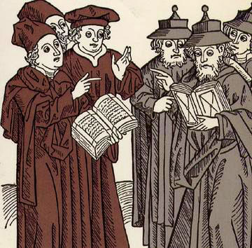 1483 art, by Johann von Armsheim, of a theological debate between Christian and Jewish scholars – courtesy of The Librarians