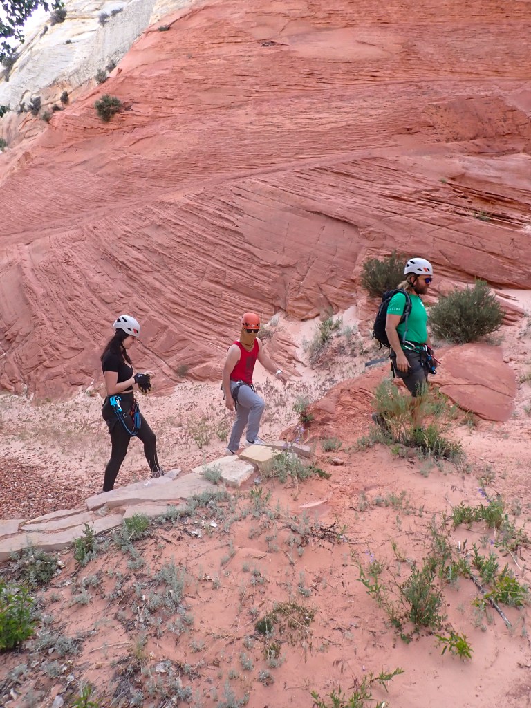 Several members in our group wanted to try rock climbing and canyoneering. So on our transfer from Capitol Reef National Park to Kanab, Utah, we took advantage of East Zion Adventures and stopped off at Via Ferrata. East Zion Adventures offers numerous activities in the surrounding area and national parks. As beginners with no experience, we decided the Via Ferrata offered the best experience. Our adventure was booked without difficulty online. Upon arrival to the store, we signed consents, and were fitted for equipment. We followed the guide in our automobile a short distance up the road. Here we were able to don our equipment while the rest of the group was able to watch. After checking for safety, reviewing the procedure- we headed up. Those remaining on the ground were able to see us for the most of the experience. The guide took plenty of pictures which he sent via drop box to our Iphones. We were fortunate that we were the only climbers that day. Making our way down was thrilling. It was incredible! The guide was patient, courteous and safety conscious. Our adventure ended with about 30 min of time remaining- most likely due to the lack of other participants. Would use this organization again without hesitation!