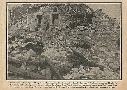 Fleury played a role in World War I’s- Battle of Verdun. The town was captured between the Germans and French at least sixteen times. Prior to the war, Fleury as a small hamlet with a population of 422 people who primarily worked in cereal farming and wood working. In 1914, the town was traversed by numerous soldiers moving to the Woevre Plain (Battle of Marne). The Battle of Verdun, the longest battle of World War I, was fought from February 21 to December 18, 1916. Fleury was evacuated shortly after German forces attacked to Verdun and Bras-sur-Meuse. The Germans took control of Fort Douamont three days later. In 1918, it was declared as “village that died for France.” German Historians, Hannes Heer and Klaus Naumann, have calculated that the French suffered 377,231 casualties, Germans 337,000, for a total of 714,231 causalities. This averaged 70,000 a month. Their work validate the 2014 findings of William Philpott. He determined 714,000 casualties suffered by both sides during the Battle of Verdun in 1916 with an additional 1,250,000 casualties suffered in the vicinity of Verdun in the war. The battle came to represent the determination of the French Army and a world reminder of the destruction wrought by war.