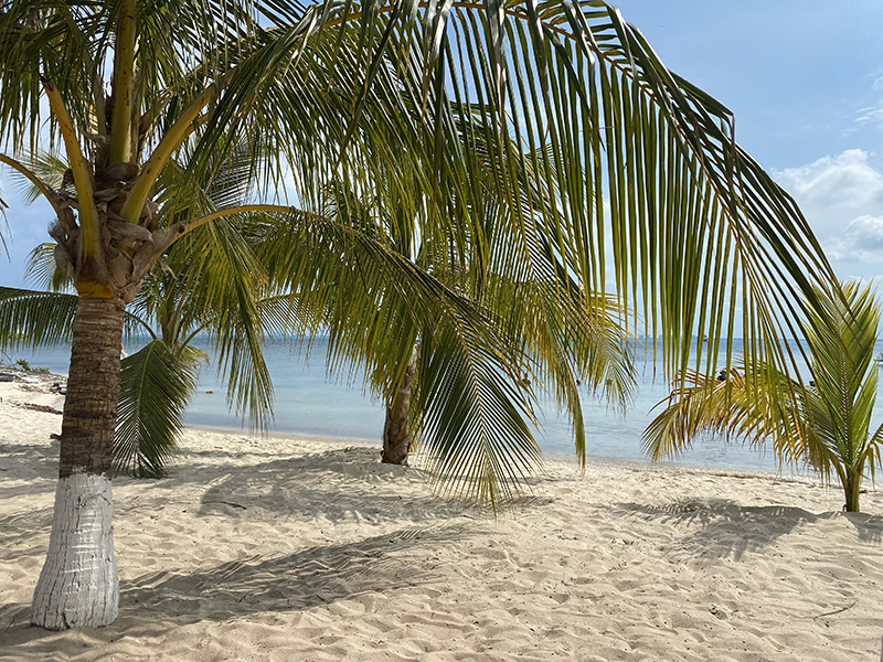 Palm trees, coconut trees, and banana trees root themselves in Mujeres’ soil.