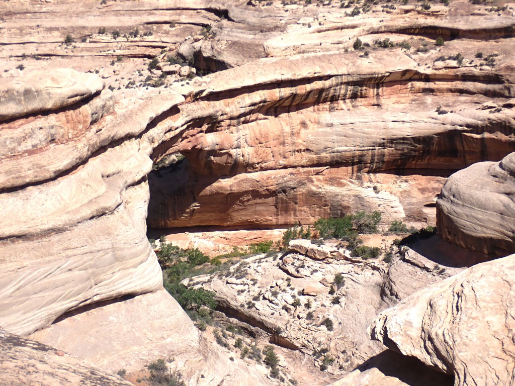 The Kachina Bridge Overlook is roughly at mile 4.5. It is a 10 min hike ( 0.3 miles)on a paved trail to the overlook. The bridge spans Armstrong Canyon, a tributary of White Canyon. If you wish to hike down to the bridge- you will find the trailhead entrance at the Kachina Bridge parking lot. Plan on 1-2 hours to complete the 1.7 mile journey rate as STRENOUS with steep stairs, handrails and wooden ladders.