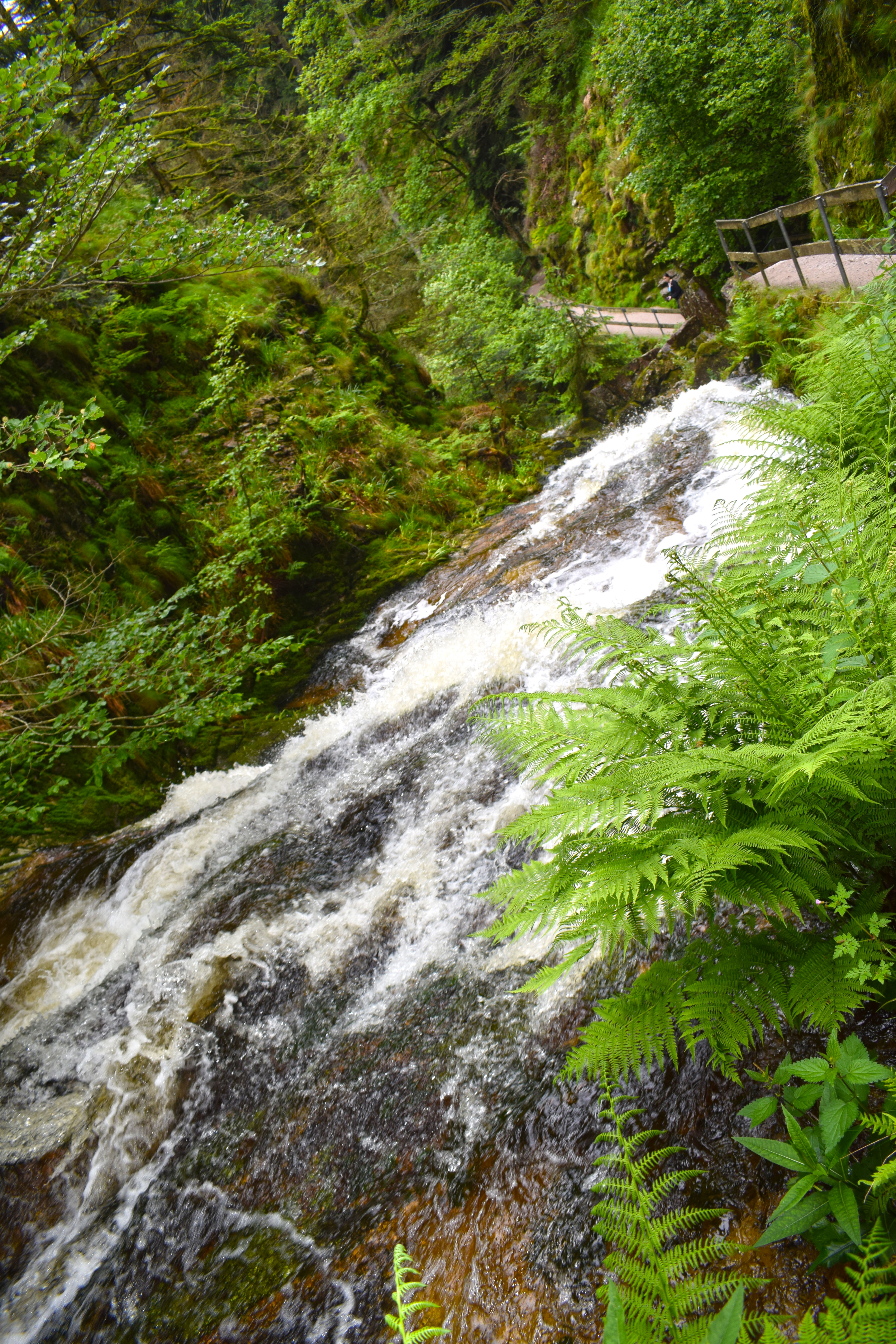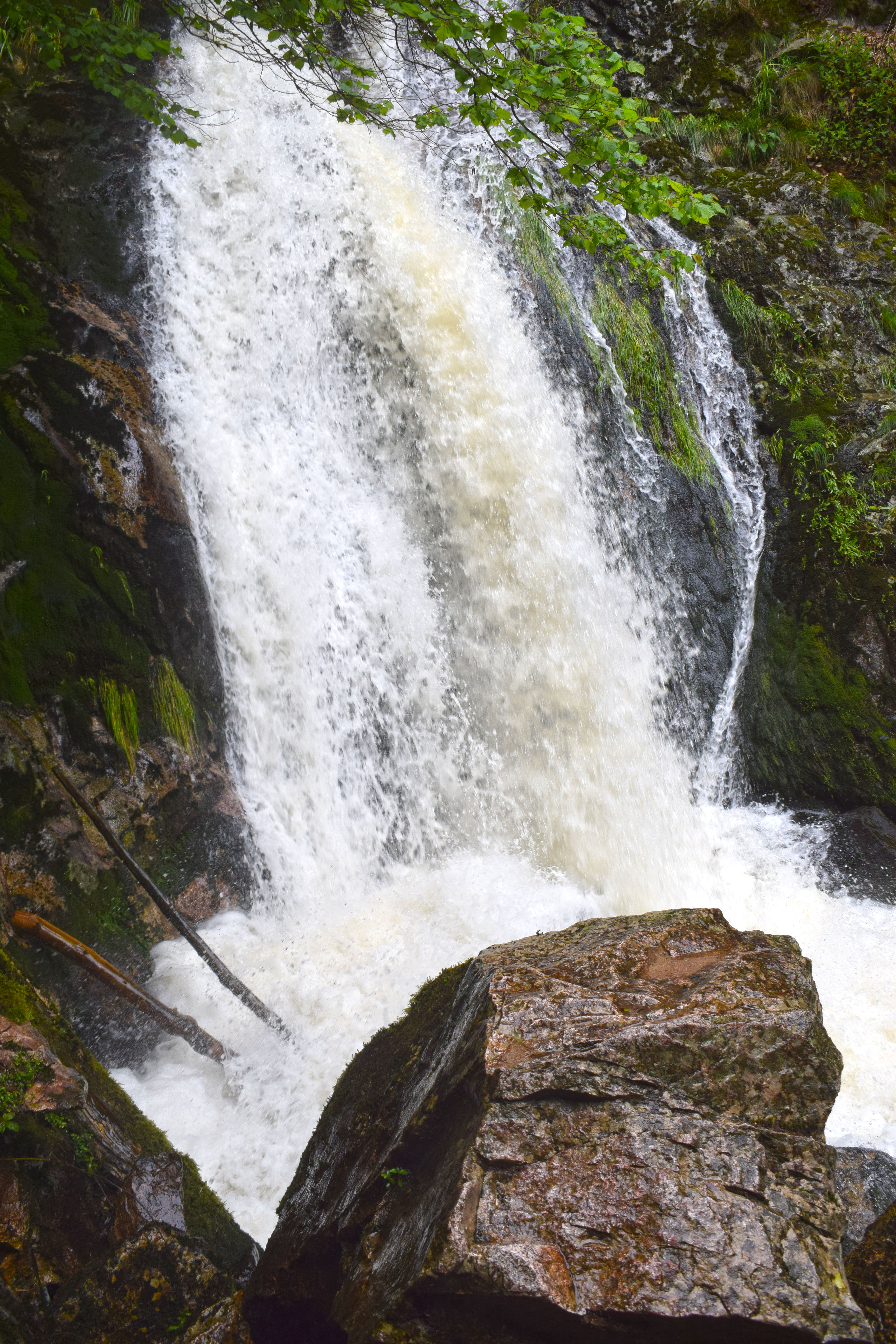 – Allerheiligen Waterfalls: The All Saints Waterfalls (German: Allerheiligen-Wasserfälle) are located in the Black Forest on the territory of the town of Oppenau in the German state of Baden-Württemberg at an elevation of about 500 m above NN. The Lierbach stream, also called the Grindenbach, cascades, as a natural waterfall, down seven steps, a total drop of 83 metres. Due to the scouring of the rocks under the cataract which have formed basin-like holes known as Gumpen or kolks), the falls are also called the Büttensteiner Waterfalls (“Tub Stone” waterfalls) or Sieben Bütten (“Seven Tubs”). The waterfalls belonged for centuries to All Saints’ Abbey, the ruins of which are only a few hundred metres away. Because they lie in a deeply incised and narrow valley, they were inaccessible for a long time