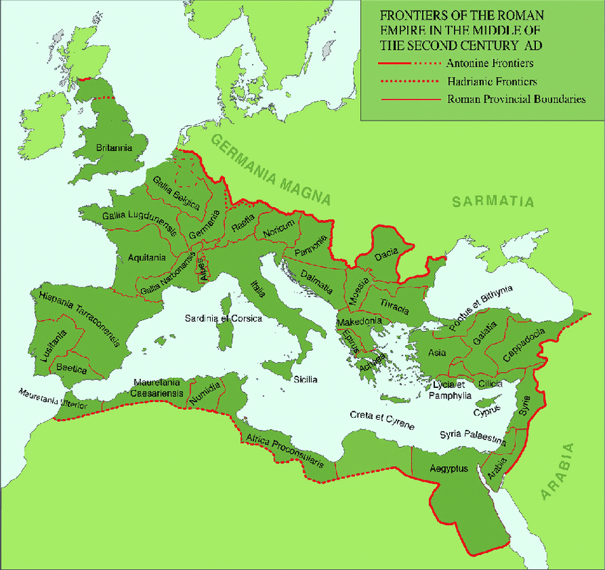 Roman Empire’s borders; the area east of the province of Germania (not Germania Magna) and north of the province of Raetia is where the Black Forest is – courtesy of ResearchGate