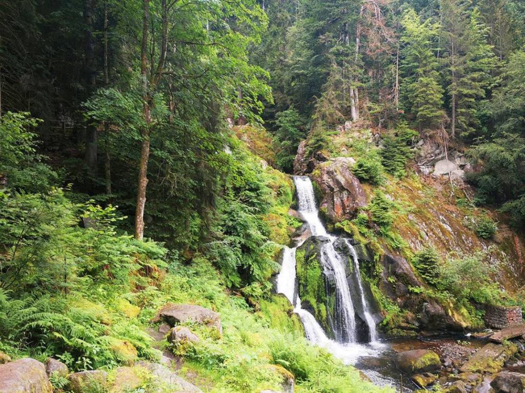 Triberg Waterfalls, promoted as the highest in Germany when the title is held by one in Bavaria; Triberg Waterfalls’ flora are more diverse than the land surrounding it, and an educational sign along the paths there says this is what the Black Forest would be like without monoculture – courtesy of The Train Diaries