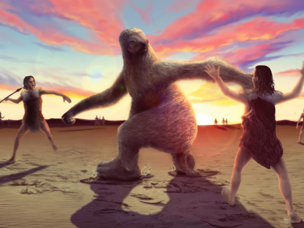 Recreation of a giant sloth hunt – courtesy of The New Yorker
