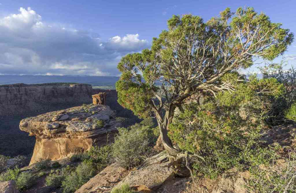 The Pinyon Juniper Woodland is in sunny areas beneath the canyon’s rims. It has half of the Ponderosa Pine Forest’s rainfall, and shelters drought-resistant (water capture and retainment due to the dry environment) plants such as Utah juniper and pinyon pine. The prickly pear cactus is here, and is a source of water for many animals. This ecosystem is sweltering in summer, and the trees are shade sources for mammals such as Bobcats and skunks.