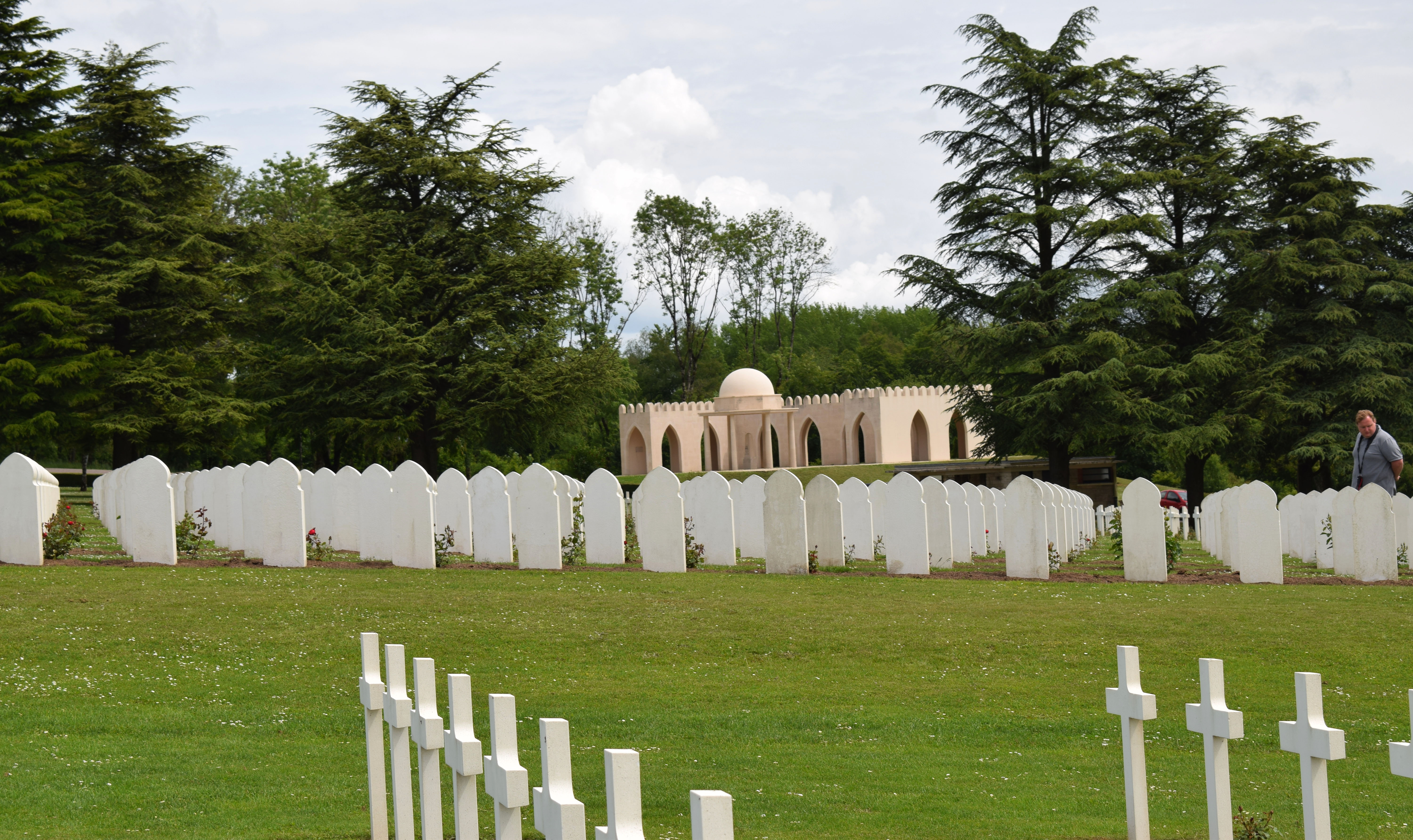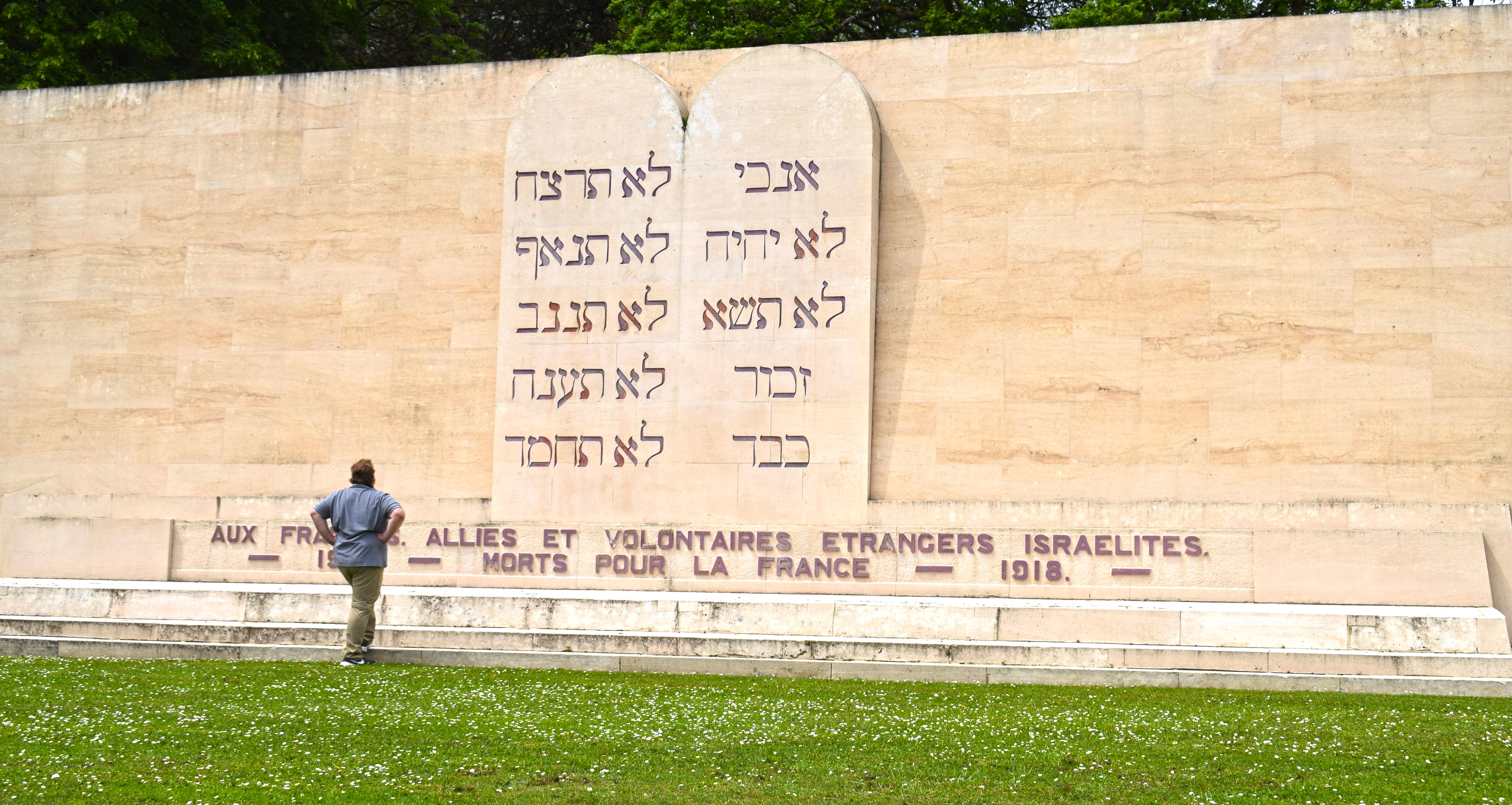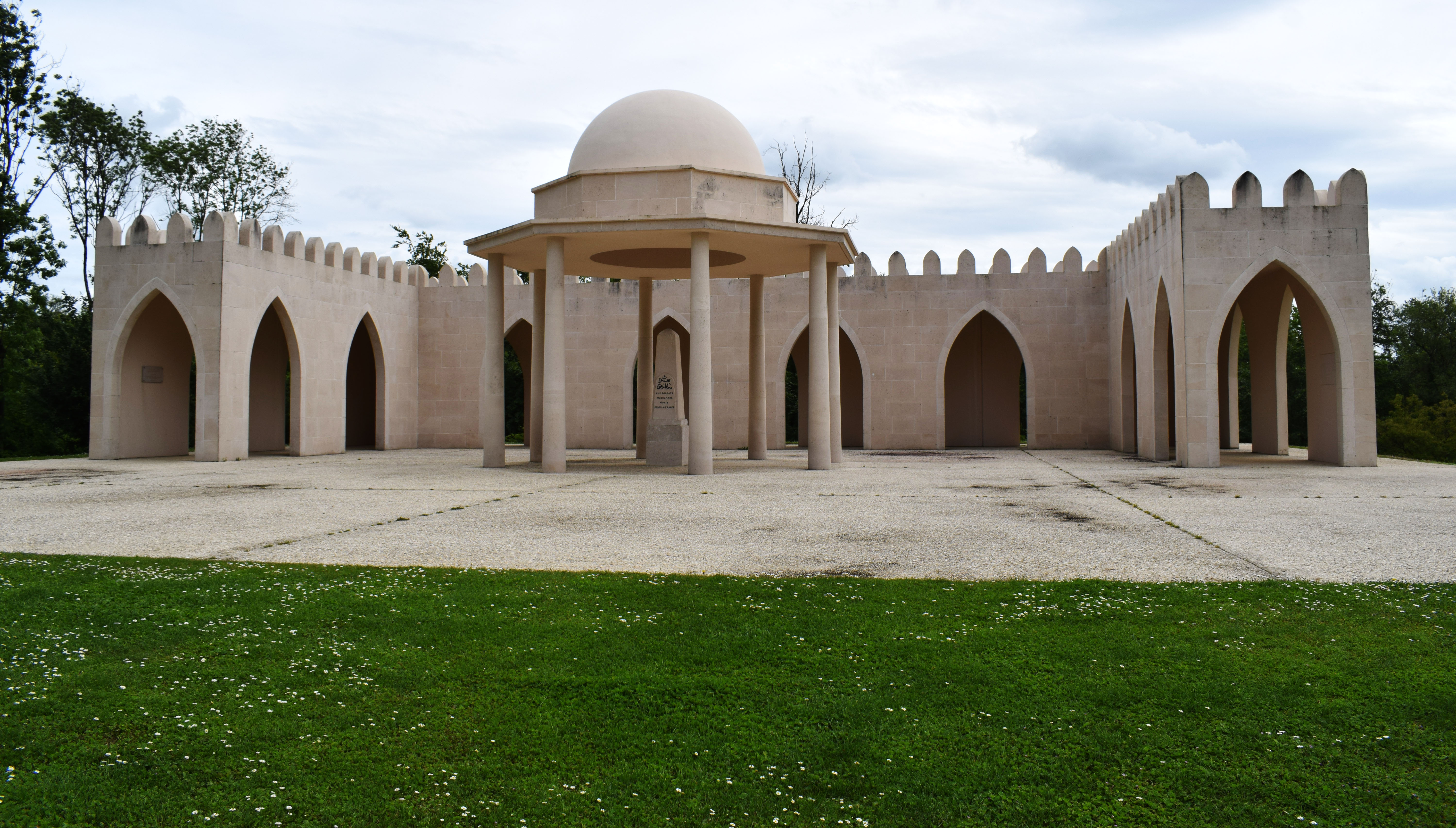 The military cemetery contains 16,142 graves of French soldiers, mostly Catholics, including six from the Second World War. The individual graves are aligned in rows that reconstitute the alignment of an army The vast majority of the graves are Christian. They take the form of a white Latin cross. A red rosebush precedes each grave and brings a touch of bright colour and contrast with the white of the cross. a square of 592 headstones of Muslim soldiers. The star and the crescent can be recognized above the inscription “ci-gît” (here lies) in Arabic. the Muslim memorial is located to the east of the cemetery. It takes the form of a 25-meter long white stone ambulatory, in Islamic style, with a kubba. To the west of the cemetery is the monument dedicated to soldiers of the Jewish faith. Built in 1938, it is decorated with the Tables of the Law engraved with Hebrew letters.