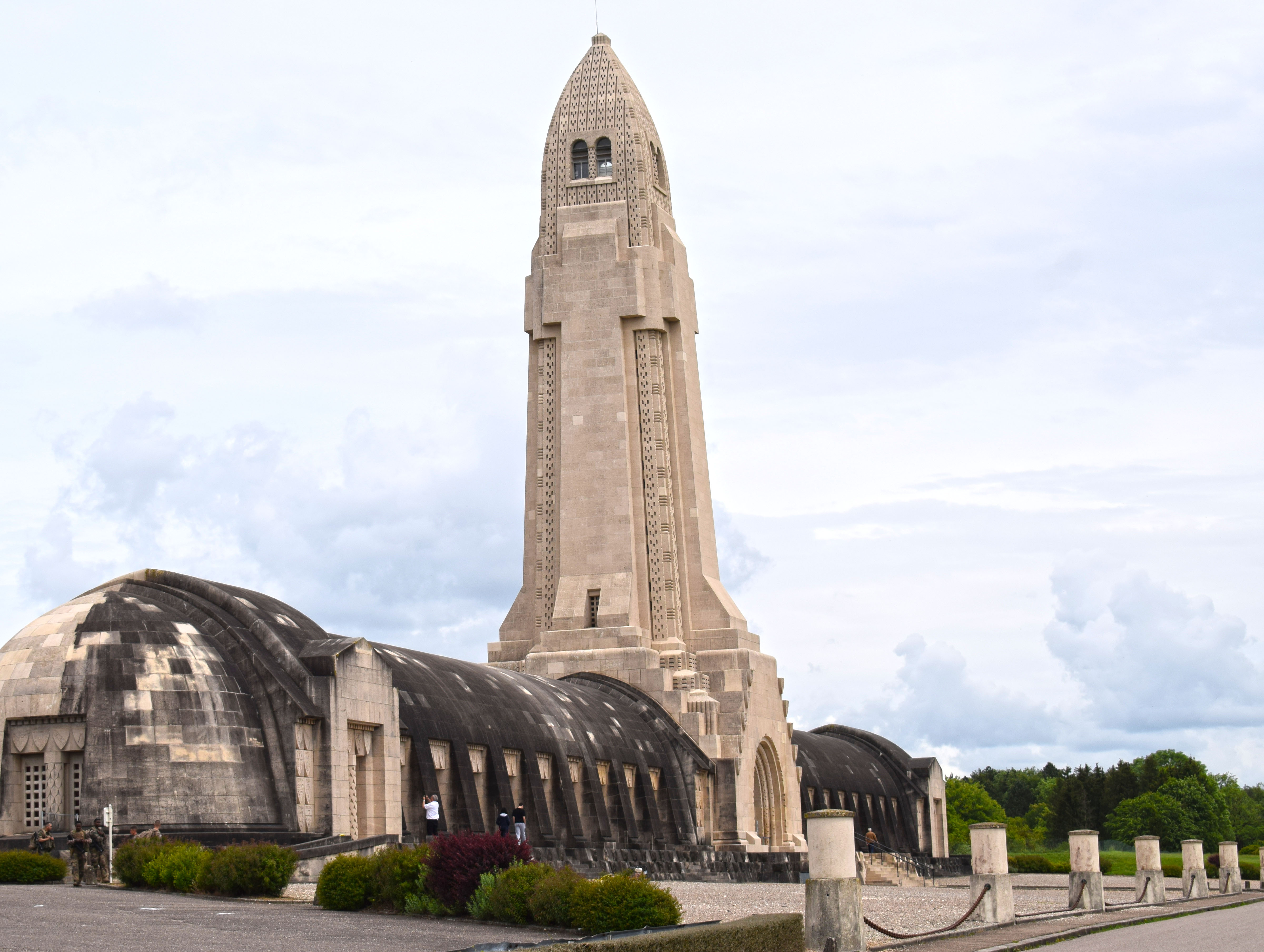 The tower was a gift from the Americans. It soars 46 meters and offers stunning views onto the battleground. It is frequently referred to as the “lantern of the dead”. Halfway up the tower, window displays show equipment and small scenes highlighting soldiers of each camp. The top of the tower hosts lookout stations, and rotating tables along with two monument symbols: the Beacon and the Bell. At night, the beacon lights can be seen for miles bathing the battlefield in red and white. The 2042 kg bronze bell, named Louise Anne Charlotte (in French- the Bourdon de la Victoire) was donated by American Mrs. Thorburn Van Buren. Cast in Orléans, it was celebrated by a procession in each city bringing it closer to Douaumont. Baptised in 1929 by the founder of the Ossuary, Monsigny Ginisty, its role was to ring three times, and during large ceremonies, to honor those who gave their lives in battle. Finally, the tower also serves as a lantern for the dead.