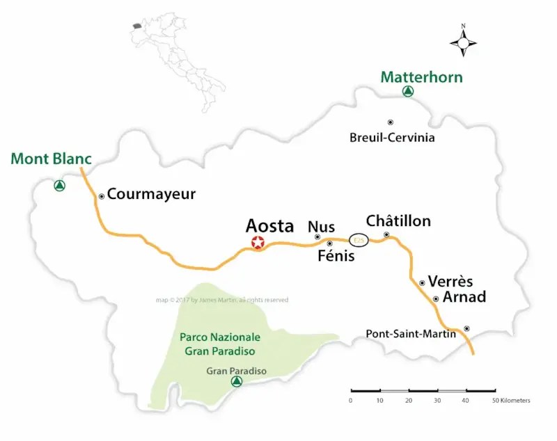 Valle D’Aosta within Italy; the state speaks, in addition to official national language Italian, French; also spoken is Valdôtain, a dialect of Franco-Provençal – courtesy of Wandering Italy