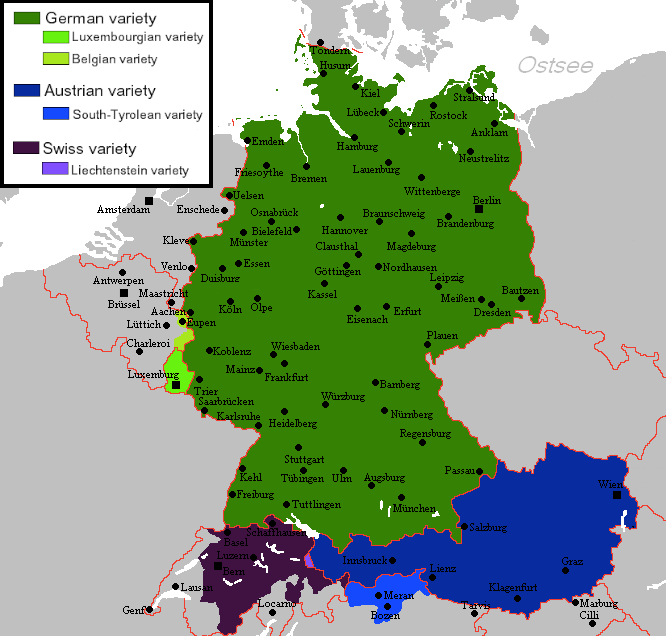 Standard German assortment by country or region – courtesy of Wikimedia Commons
